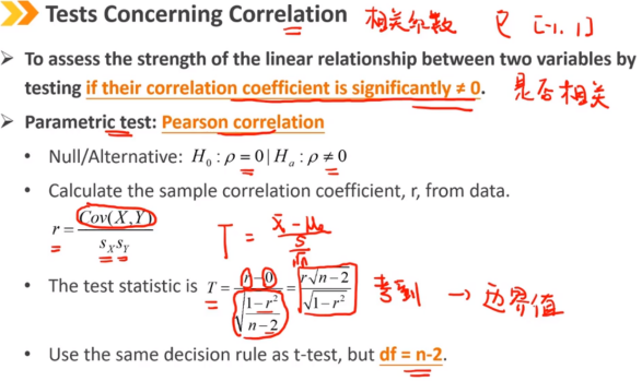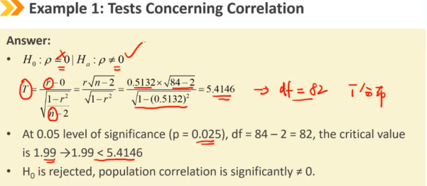 通过检验两个变量的相关系数显著不等于0来评估它们之间的线性关系的程度