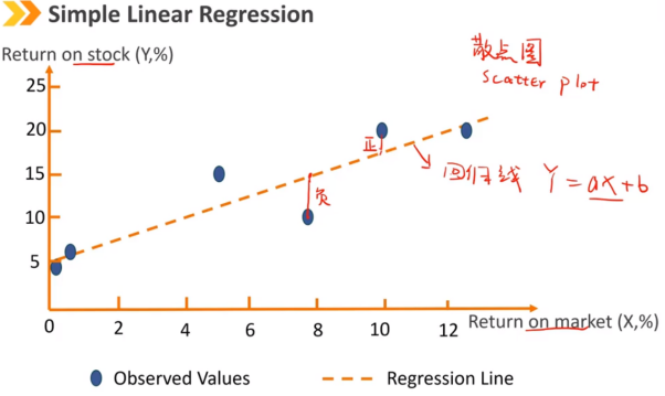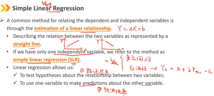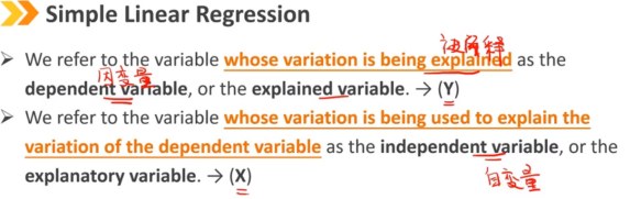 如果只有一个自变量,我们将该方法称为简单线性回归