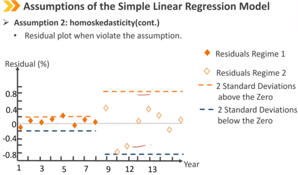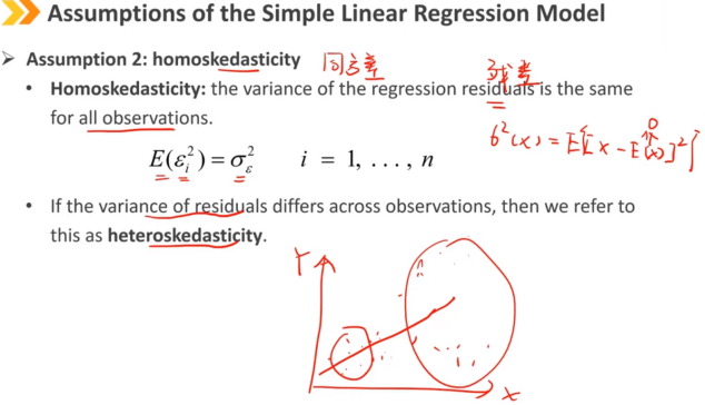 如果残差方差在不同观察值之间不同。然后我们将其称为异方差