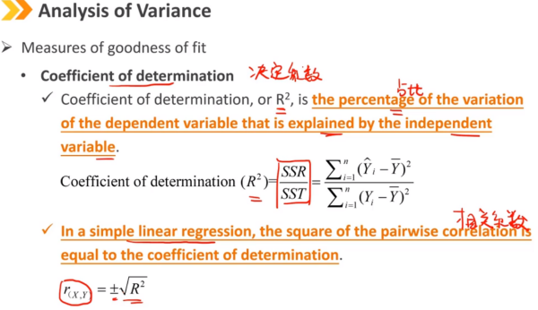 R^2:决定系数 在简单线性回归模型中,相关系数的平方等于决定系数