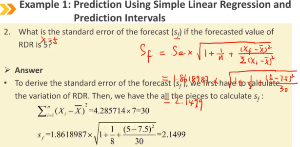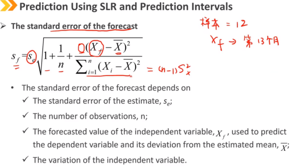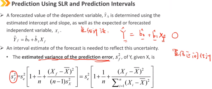 点估计预测和区间估计预测 sf^2:estimated variance of the prediction error(预测误差的估计方差)