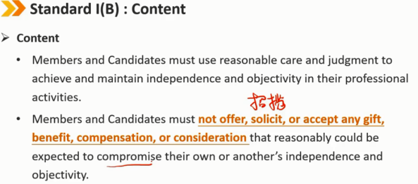 会员和候选人不得提供、索取或接受任何礼物、利益、补偿或好处,这些礼物、利益、补偿或好处可能会损害其自身或他人的独立性和客观性。