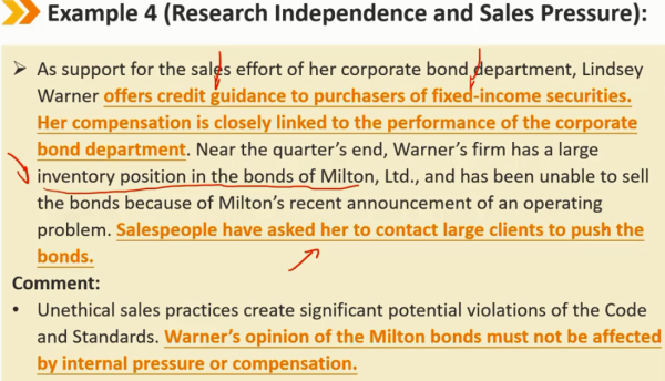 会员和候选人也可能面临来自自己公司的压力,例如,为与公司有潜在或持续业务关系的某些公司发布有利的研究报告或建议。