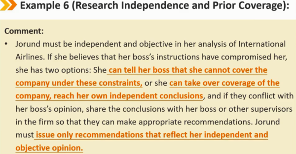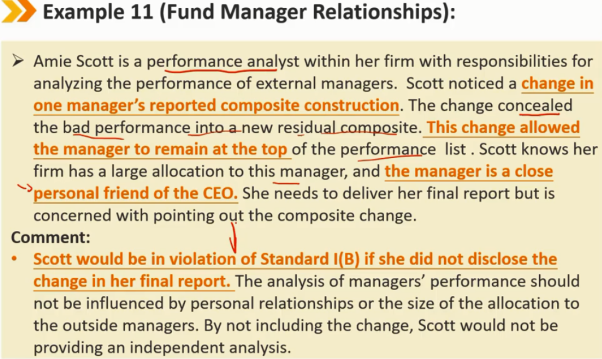 在公司投资绩效衡量部门工作的成员和候选人也可能面临挑战其独立性和客观性的情况。