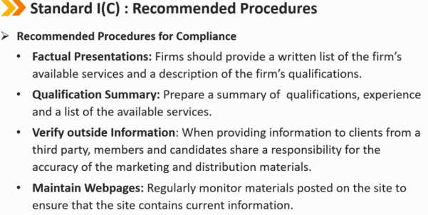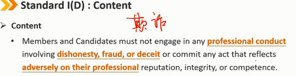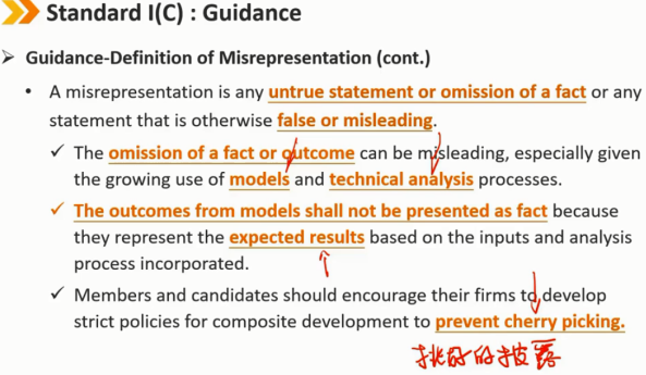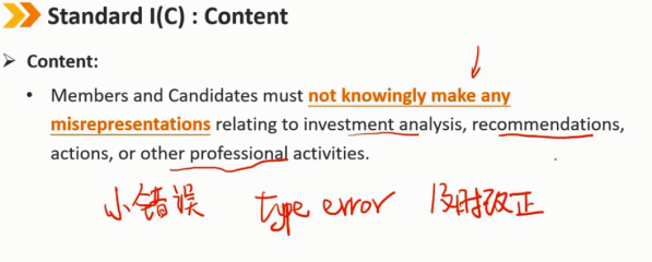 会员和候选人不得故意做出与投资分析、建议、行动或其他专业活动有关的任何虚假陈述。