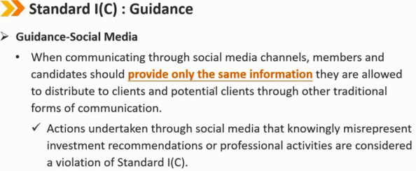 通过社交媒体采取的故意歪曲投资建议或专业活动的行为被视为违反标准Ⅰ(C)