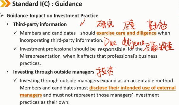 通过外部经理进行投资是一种可接受的方法,会员和候选人必须披露他们对外部管理者的预期用途,不得将这些管理者的投资行为视为自己的投资行为