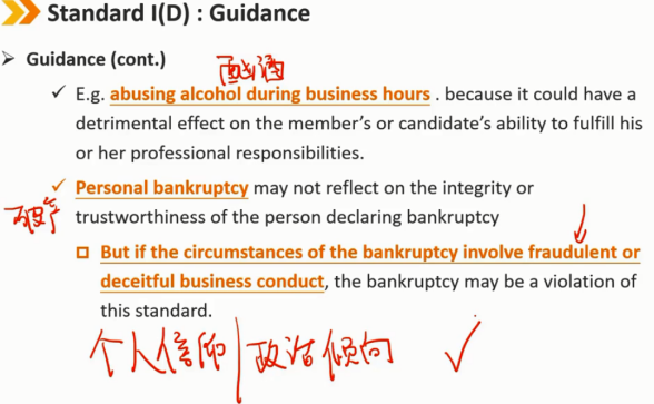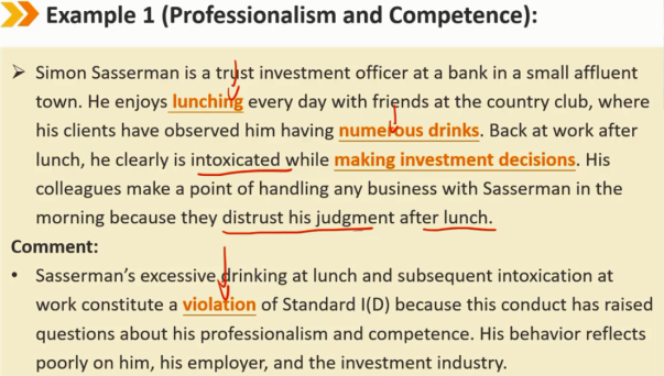 例如,在工作时间酗酒。因为这可能会对会员或候选人履行其专业职责的能力产生不利影响