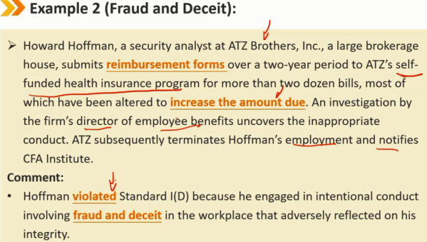 任何涉及撒谎、作弊、偷窃或其他不诚实行为的行为,如果对会员或候选人的职业活动产生负面影响,则违反本标准