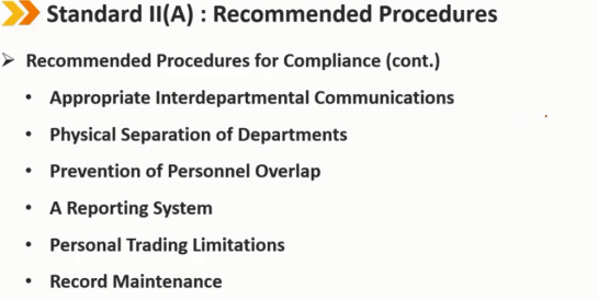 指南——马赛克理论(外部看上去比较模糊的信息,例如非公开非重要的信息) 分析师可以使用从公开和非重要非公开信息分析中得出的重要结论作为投资建议和决策的基础,即使这些结论如果由公司直接传达给分析师,本应是重大内幕信息 分析员通过对公共信息和非重大非公共信息项的分析,得出关于公司行为或事件的结论 -> 不违反Ⅱ(A) 虽然分析师可以在研究报告中自由使用马赛克信息,但他们应该保存并记录所有研究[见标准Ⅴ(C)-记录保留]