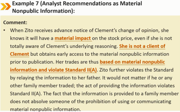 当一位特别知名或受尊敬的分析师发布报告或修改其建议时,该信息本身可能会对市场产生影响,因此根据标准Ⅱ(a),该信息在理论上可能被视为重要信息,该报告必须在分发给客户时予以公布。