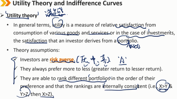 他们能够按照自己偏好的顺序对不同的投资组合进行排名,并且排名在内部是一致的(即 X>Y & Y>Z,可得 X>Z)