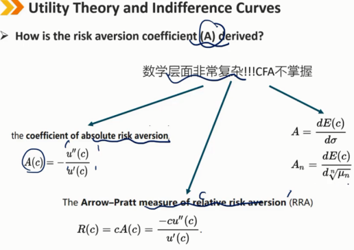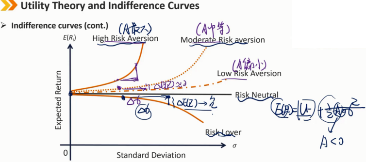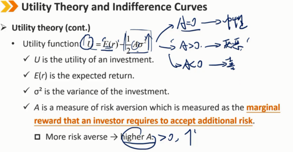 A=0 -> 风险中性 A>0 -> 风险厌恶 A<0 -> 风险喜好