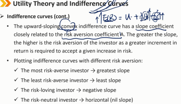 无差异曲线描绘了投资者为维持给定的效用水平而接受的风险收益对的组合。