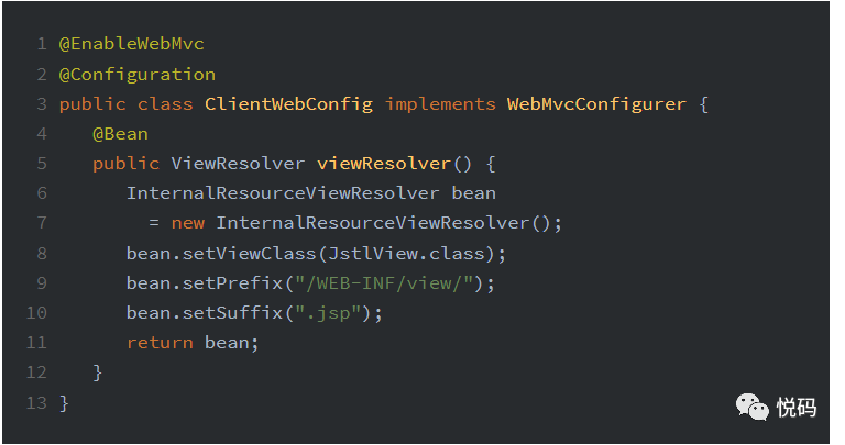 | 还需要将@EnableWebMvc注释添加到@Configuration类,并定义一个视图解析器来解析从控制器返回的视图: