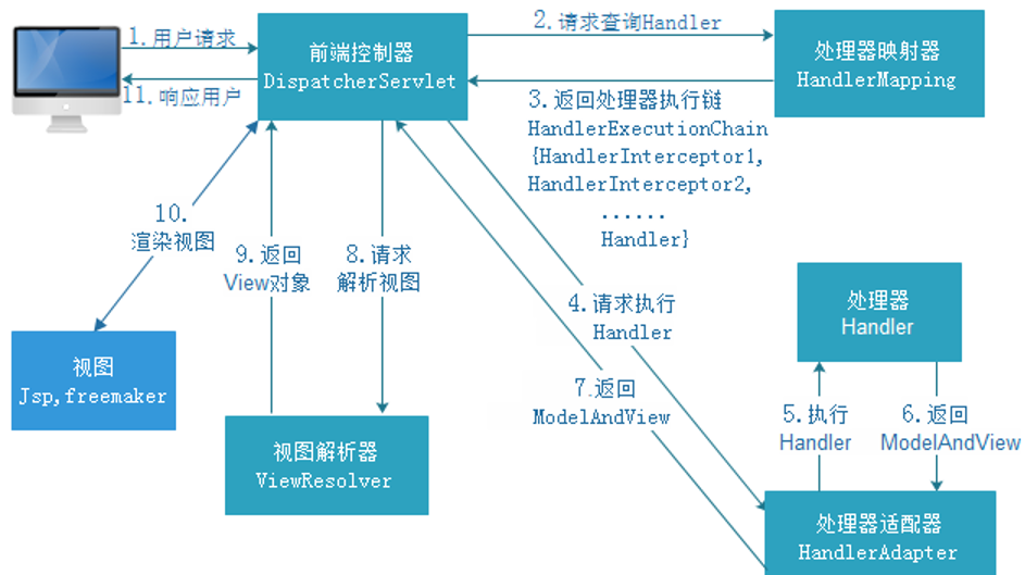 Handler 是继DispatcherServlet前端控制器的后端控制器,在DispatcherServlet的控制下Handler对具体的用户请求进行处理。