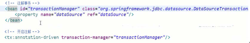 http://www.springframework.org/schema/tx http://www.springframework.org/schema/tx/spring-tx-4.0.xsd http://www.springframework.org/schema/util http://www.springframework.org/schema/util/spring-util-4.0.xsd"> <!-- 事务管理器 --> <bean id="transactionManager" class="org.springframework.jdbc.datasource.DataSourceTransactionManager"> <!-- 数据源 --> <property name="dataSource" ref="dataSource" /> </bean> <!-- 通知 --> <tx:advice id="txAdvice" transaction-manager="transactionManager"> <tx:attributes> <!-- 传播行为 --> <tx:method name="save*" propagation="REQUIRED" /> <tx:method name="insert*" propagation="REQUIRED" /> <tx:method name="delete*" propagation="REQUIRED" /> <tx:method name="update*" propagation="REQUIRED" /> <tx:method name="find*" propagation="SUPPORTS" read-only="true" /> <tx:method name="get*" propagation="SUPPORTS" read-only="true" /> <tx:method name="query*" propagation="SUPPORTS" read-only="true" /> </tx:attributes> </tx:advice> <!-- 切面 --> <aop:config> <aop:advisor advice-ref="txAdvice" pointcut="execution(* cn.itcast.ssm.service.*.*(..))" /> </aop:config> </beans>