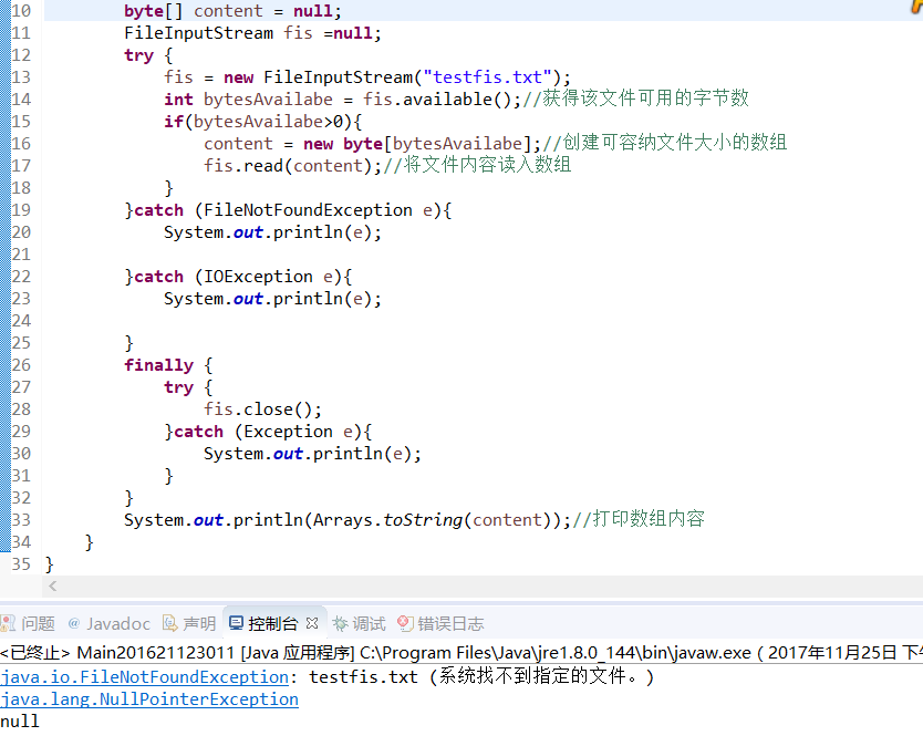 content = new byte[bytesAvailabe];//创建可容纳文件大小的数组