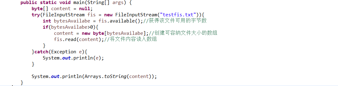 int bytesAvailabe = fis.available();//获得该文件可用的字节数