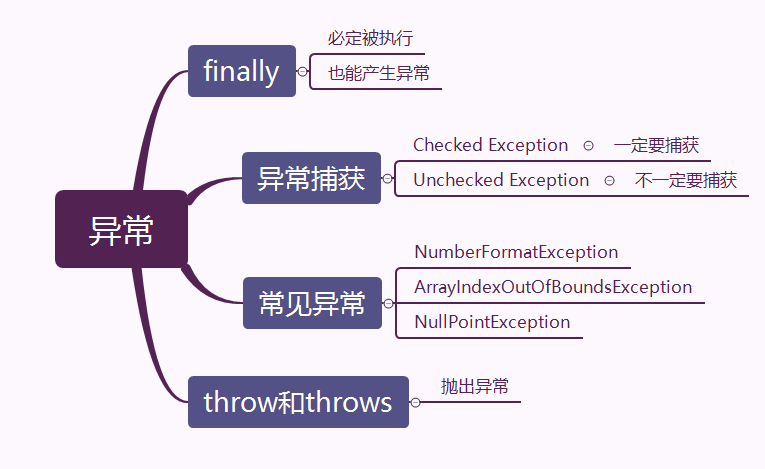 1.1 以你喜欢的方式(思维导图或其他)归纳总结异常相关内容。
