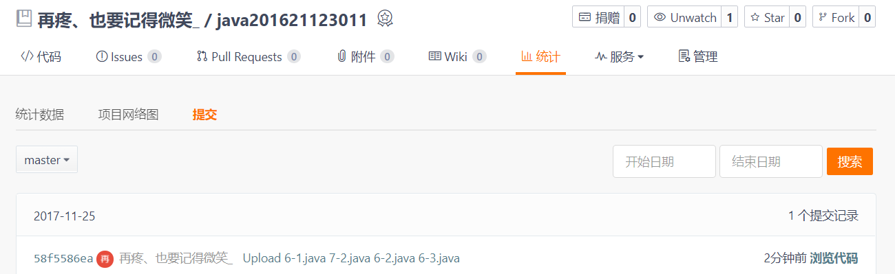 在码云的项目中,依次选择“统计-Commits历史-设置时间段”, 然后搜索并截图