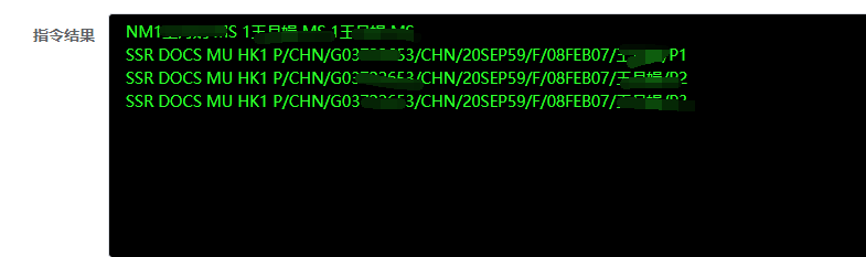 通过第一步获取的护照信息便可以根据 SSR DOC 指令格式 生成指令。 这样一来,原来要2分钟的时间 ,现在变成10秒,还减少了出错的情况。