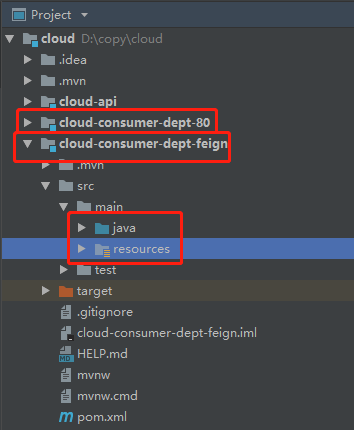 src/main目录下的java和resources本来属于cloud-consumer-dept-feign模块