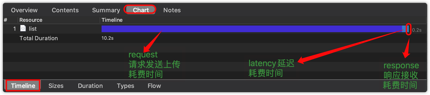 Duration:与Overview中的Duration值是一样的。不包含请求发送的时间。