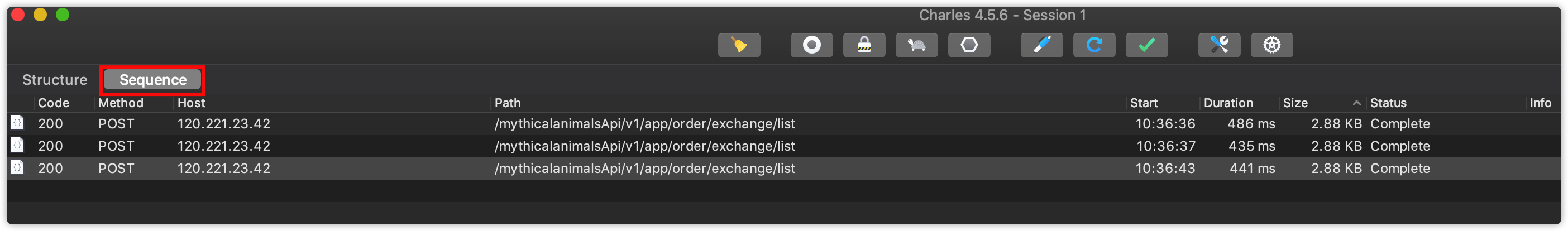 (2)Sequence形式如下图 优点:可以看到全部请求,这里的结果以数据请求的顺序来显示,最新的请求显示在最下面