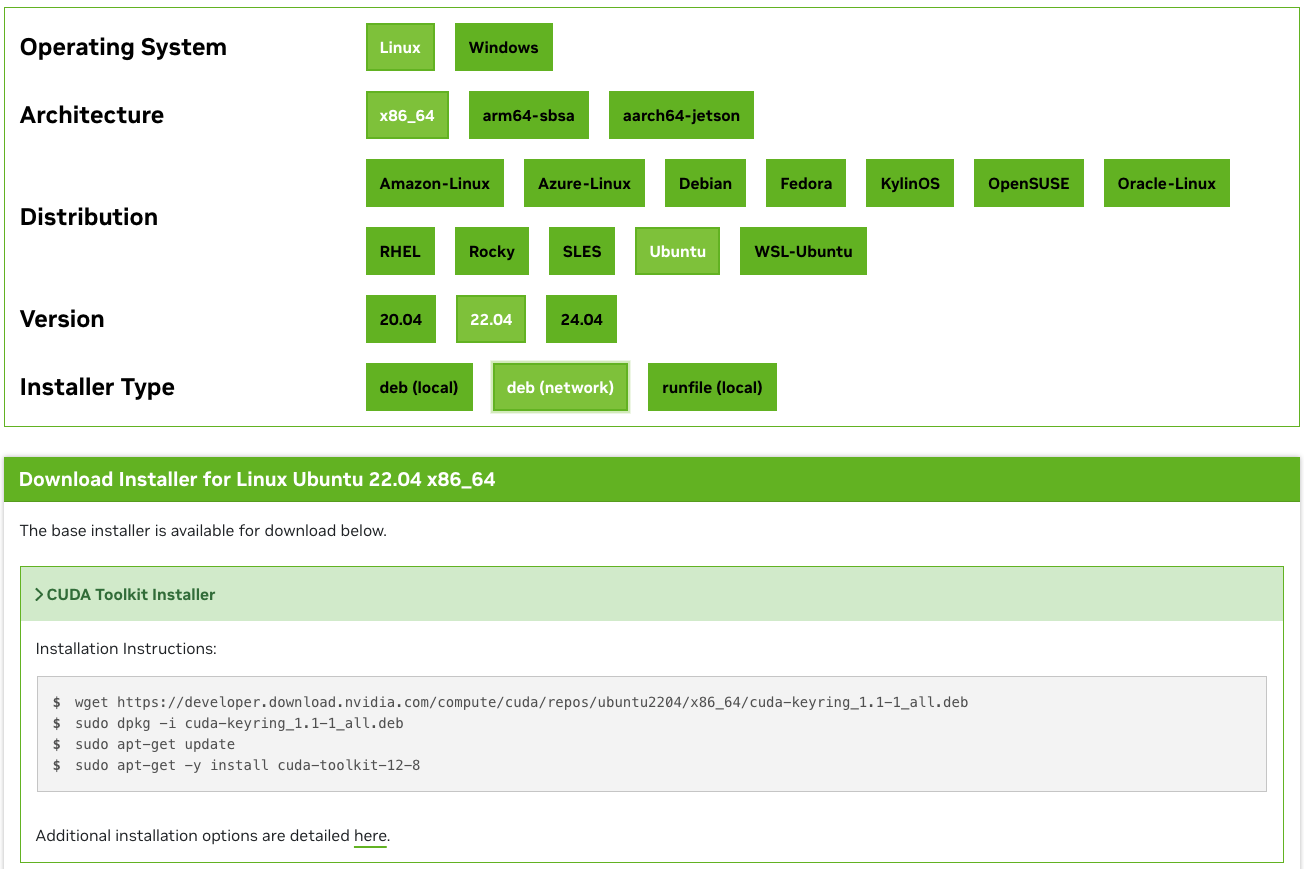 b)前往NVIDIA官网https://developer.nvidia.com/cuda-toolkit-archive,选择和NVIDIA显卡驱动版本相适应的CUDA版本,复制命令进行安装。