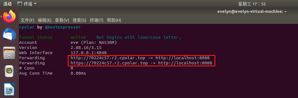 可以看到有正常生成相应的公网地址,测试穿透本地8080端口成功,按Ctrl+C返回。