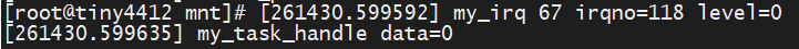 在按下按键后,触发中断,执行中断处理函数,67行被先打印,虽然tasklet_schedule先被调用,但是my_task_handle中的打印会在最后打印,这就是中断下文的效果。