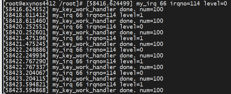 可以看到先执行schedule_work,但是还是先打印中断处理函数中的printk,schedule_work激活work,但是会延迟执行