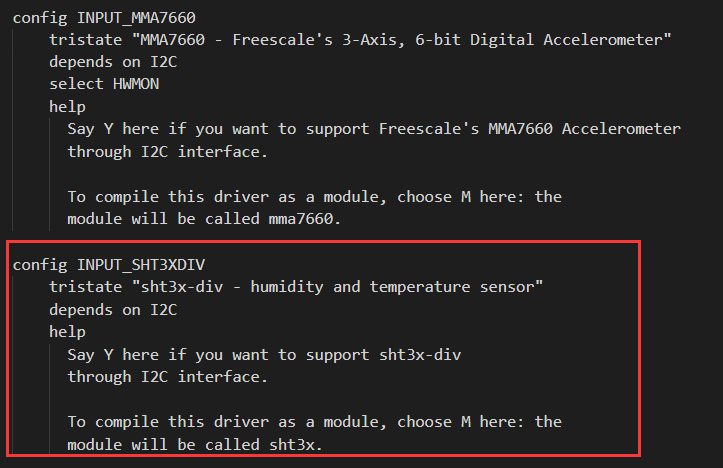 3.将mma7660作为模板修改,tristate后面双引号的部分为make menuconfig时显示的部分