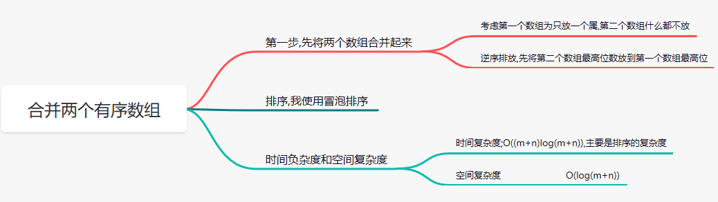 void merge(int* nums1, int nums1Size, int m, int* nums2, int nums2Size, int n){ int nu1=m-1; int nu2=n-1; while(nu2>=0&&nu1>=0) { if(nu1>nu2) //考虑m>n的情况 { nums1[nu1+nu2+1]=nums2[nu2]; nu2--; } else //考虑m=n { nums1[nu1+nu2+1]=nums1[nu1]; nu1--; } } while(nu2>=0)//考虑m为空,n>0 { nums1[nu1+nu2+1]=nums2[nu2]; nu2--; } for(int a=0;a<m+n-1;a++) { for(int b=0;b<m+n-a-1;b++) { if(nums1[b]>nums1[b+1]) { int temp=0; temp=nums1[b]; nums1[b]=nums1[b+1]; nums1[b+1]=temp; } } } }