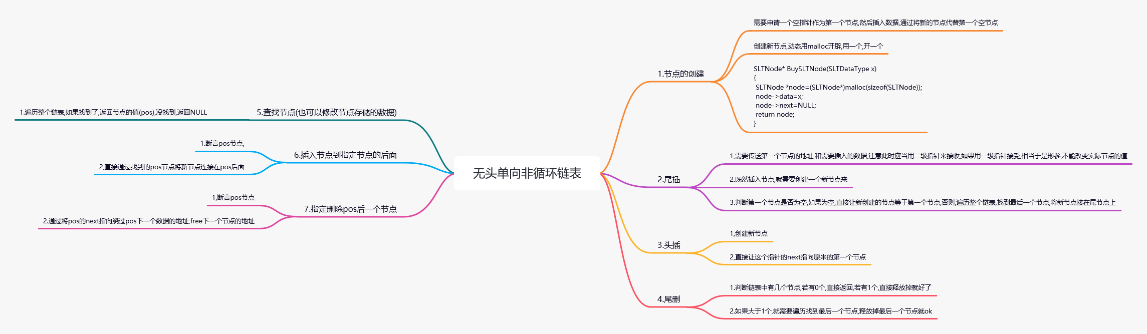 1 #include<stdio.h> 2 #include <stdlib.h> 3 #include<malloc.h> 4 #include<assert.h> 5 6 typedef int SLTDataType; 7 8 typedef struct SListNode 9 { 10 SLTDataType data; 11 struct SListNode* next; 12 }SLTNode; 13 14 // 单向+不带头+不循环 15 void SListPrint(SLTNode* plist); //打印链表 16 SLTNode* BuySLTNode(SLTDataType x);//创建节点 17 void SListPushBack(SLTNode** pplist, SLTDataType x); //尾插 18 void SListPushFront(SLTNode** pplist, SLTDataType x);// 头插 19 20 void SListPopBack(SLTNode** pplist); //尾删 21 void SListPopFront(SLTNode** pplist);//头删 22 23 SLTNode* SListFind(SLTNode* plist, SLTDataType x);//查找 24 void SListInsertAfter(SLTNode* pos,SLTDataType x);//pos后插入 25 void SListInsertBefore(SLTNode**pplist,SLTNode* pos,SLTDataType x);//pos前插入 26 void SListEraseAfter(SLTNode* pos);//删除指定数据