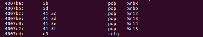 在最后一段pop r15的机器码我们可以一直到5f c3对应的汇编语言是pop rdi ;ret