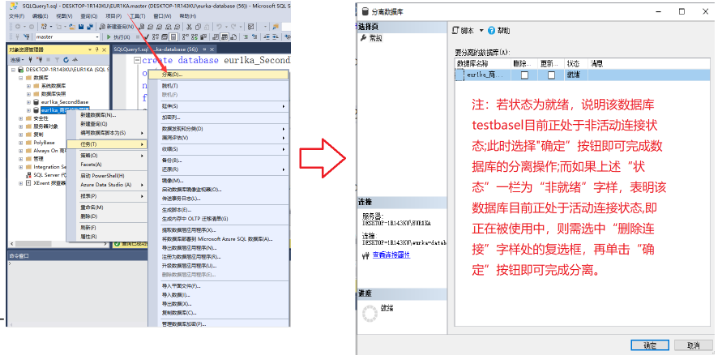 (5) 使用系统存储过程分离数据库与附加数据库。