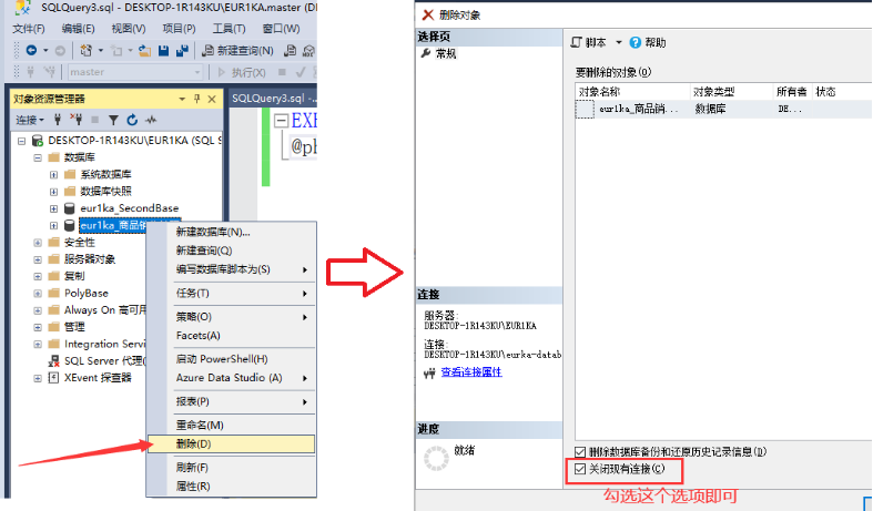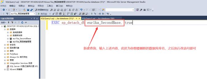 EXEC sp_detach_db eur1ka_SecondBase, true