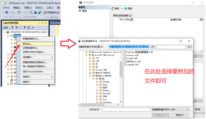 EXEC sp_attach_single_file_db @dbname='eur1ka_商品销售管理', @physname='C:\Users\eurka-database\Desktop\数据库实验0x01\hrms.mdf'