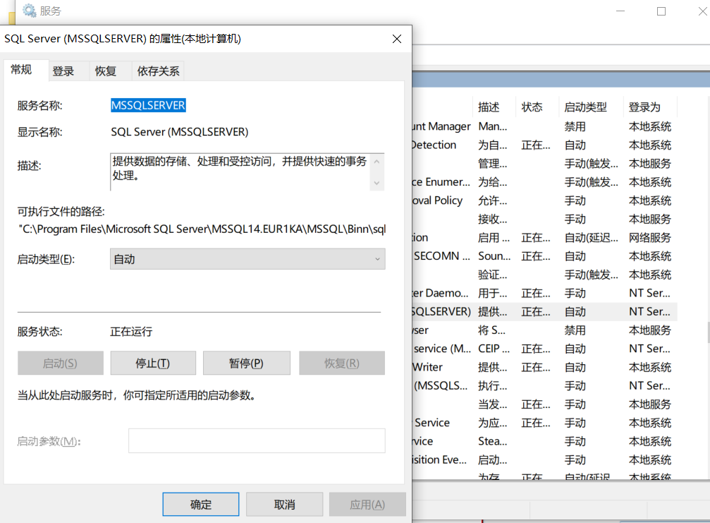 5. 有一部分电脑在安装后未开启sql server服务,需要手动开启,开启方式为点击win+r输入services.msc将sql server服务切换为自动并开启: