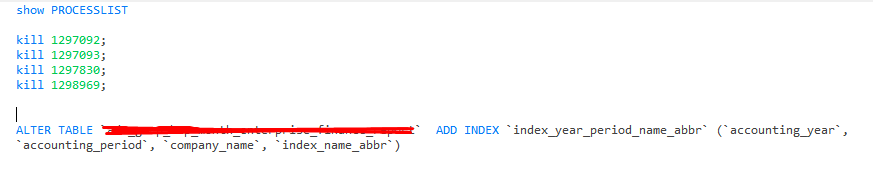 新建表时没有加索引,导入数据完成后加,数据量太大导致表锁死