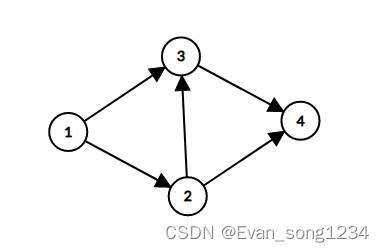 如图,每条边的容量皆为 \(1\),\(1\) 为源点,\(4\) 为汇点。