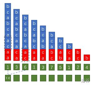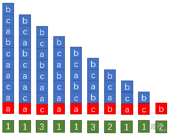 接着是四个,八个...,直到全部字符。(每个 \(i\) 对应的 \(s_{i, i + 2^k - 1}\) 在所有 \(s_{i, i + 2 ^ k - 1}\) 中的排名。)