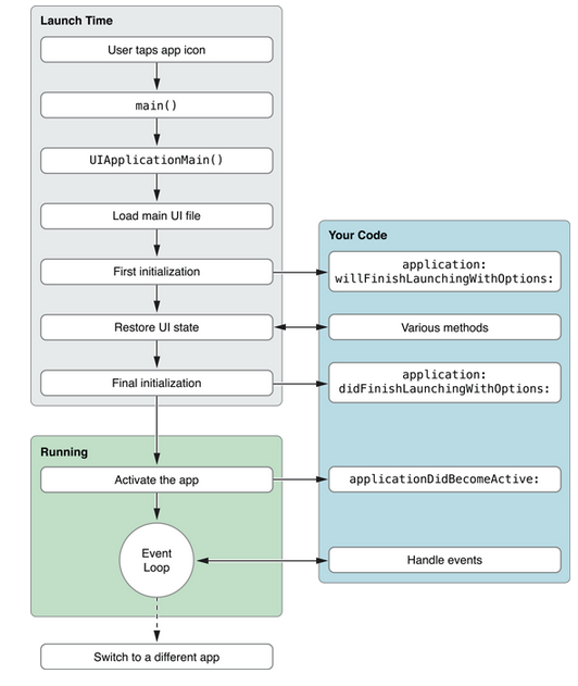 main函数是程序启动的入口,在iOS app中,main函数的功能被最小化,它的主要工作都交给了UIKit framework