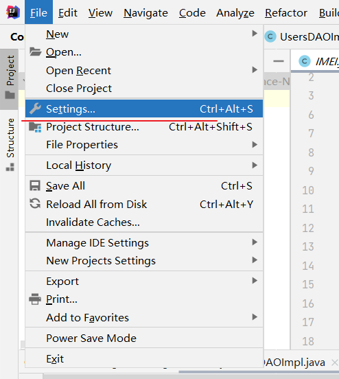 第一步: File -> Settings