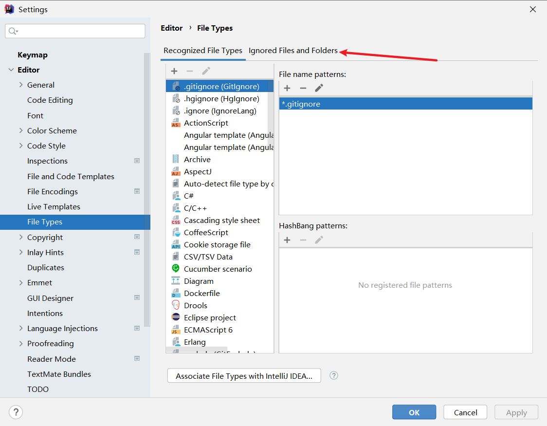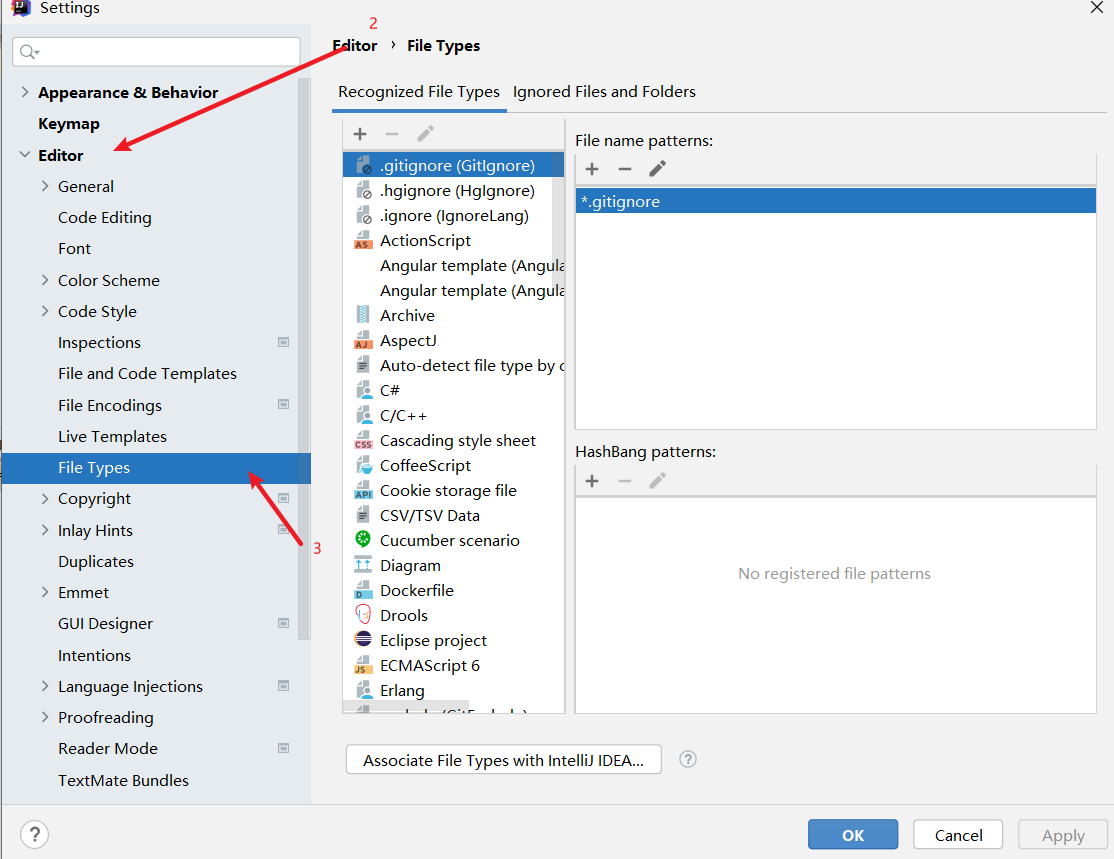 第二步:打开Editor - > File Types