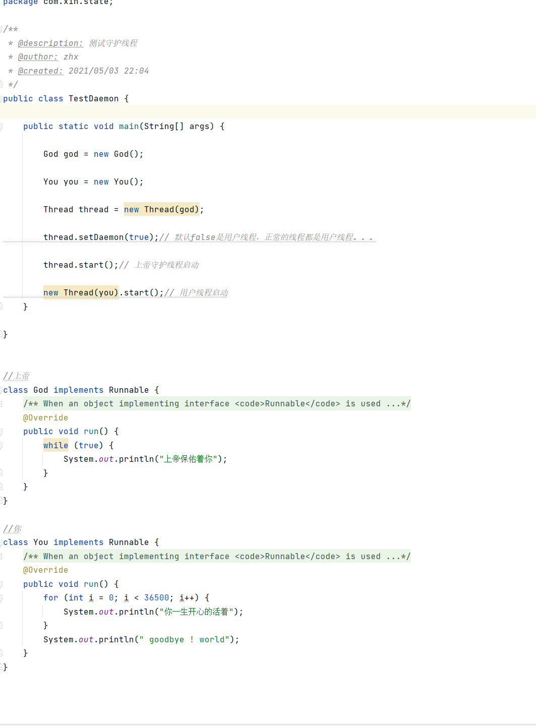 如:守护线程 后台记录操作日志,监控内存,垃圾回收等待。。。。