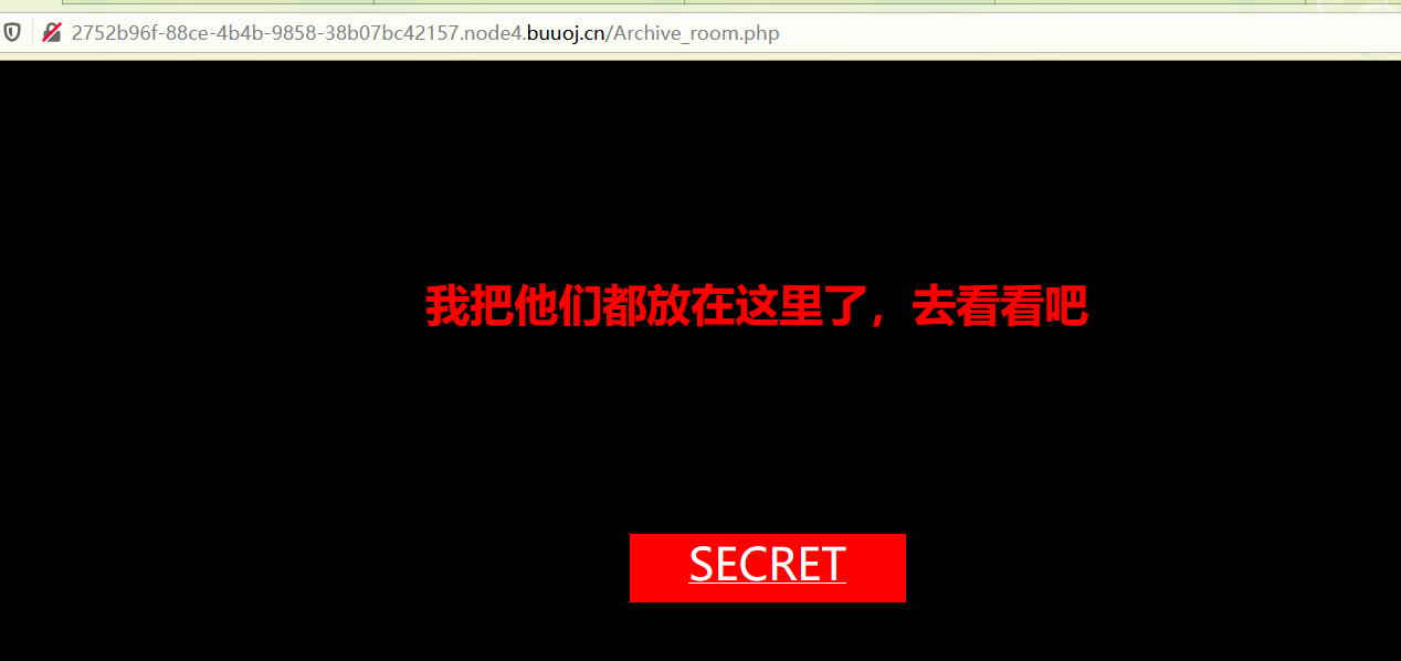 题解:打开网址,看到一个界面,先查看源码,发现了一个界面,查看源码,可以看到一个提示页面Archive_room.php,访问之后可以看到有一个secret按钮,点击之后快速跳转,如下面两张图所示: