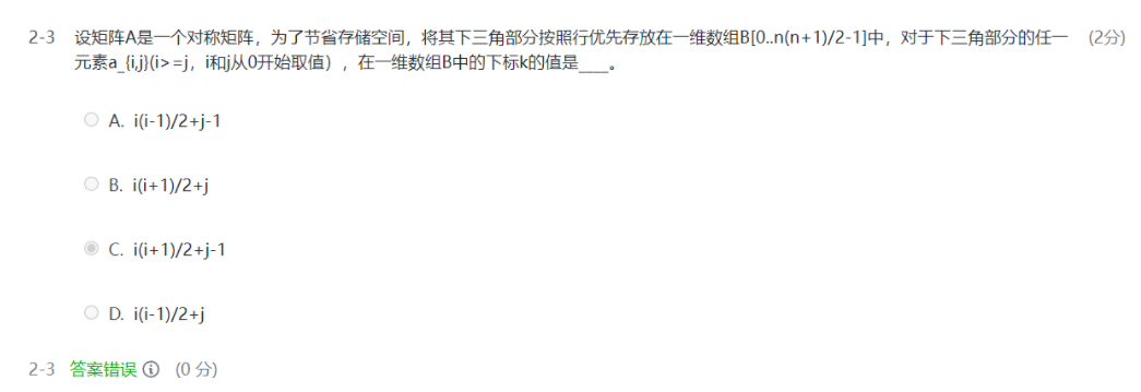 由题知道A起始地址是0,所以n=i+1带入得An=(i*i+3i+2)/2,